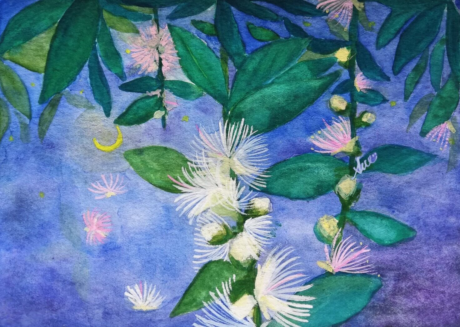 西表島の夏、夕暮れと共に咲き、朝が来ると落ちる。