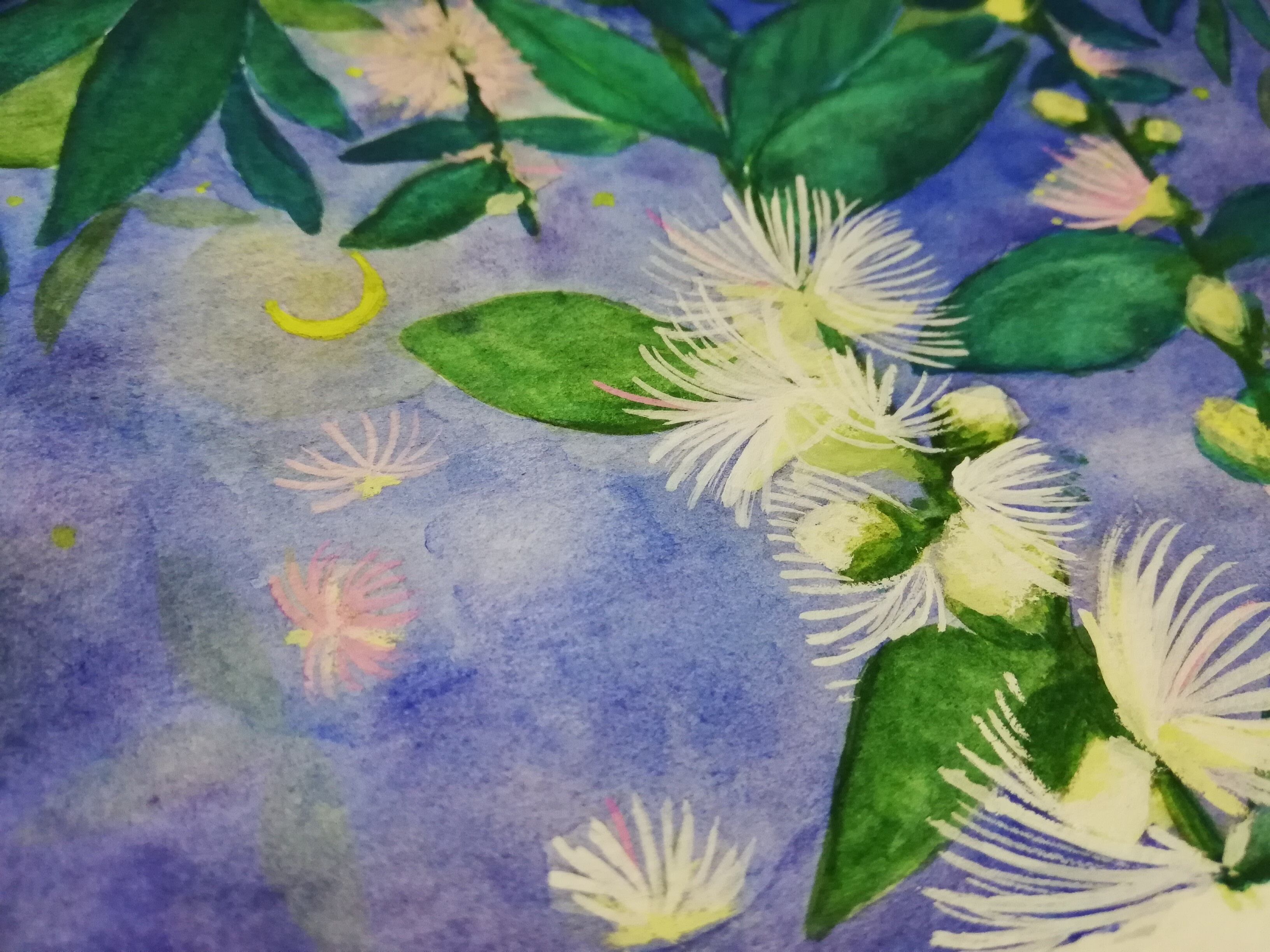 西表島の夏、夕暮れと共に咲き、朝が来ると落ちる。西表島の川にファンタジーのような光景が現れる。美しくて、儚くて、胸がきゅーっとなる。
